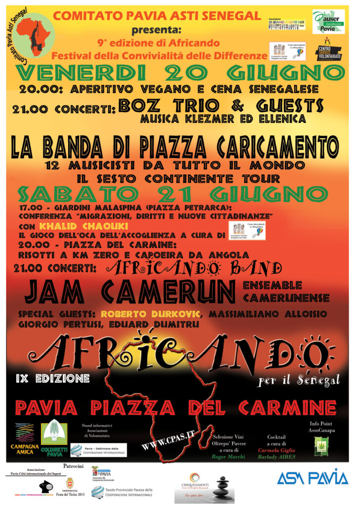 Ogni anno, nel mese di giugno, Pavia si apre a un evento multiculturale che ha come obiettivo la raccolta fondi a sostegno delle attività del CPAS e la sensibilizzazione della cittadinanza sui temi della cooperazione e della solidarietà.